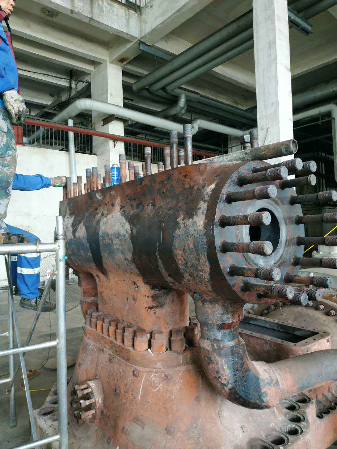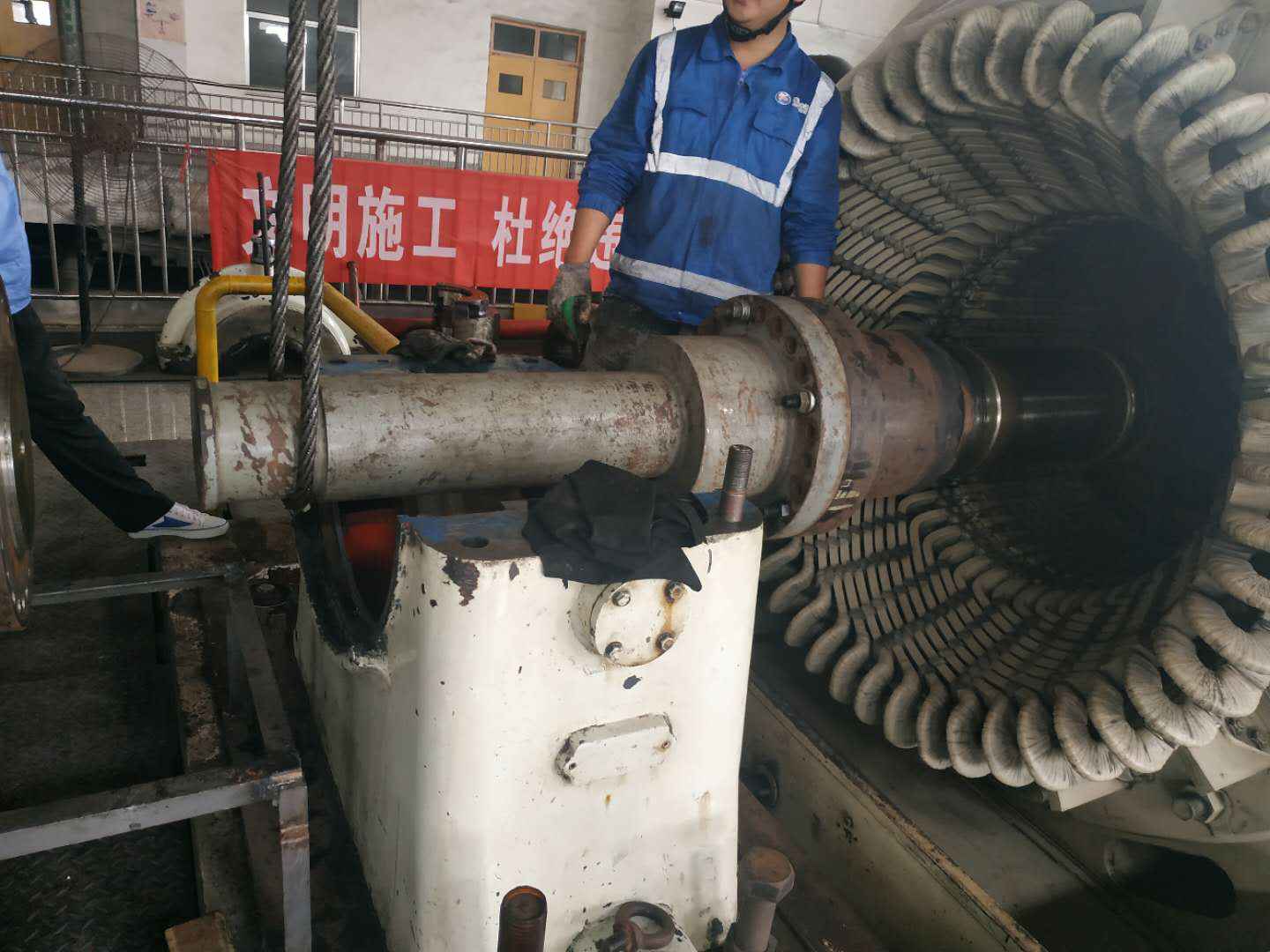 由米兰体育·米兰登陆入口-米兰online(中国)承建的山东海能化学有限责任公司机组B15MW背压式汽轮机组(原 C25抽汽凝汽式机组)大修工程现已完成凝结水泵、油站检修工作,发电机前后轴承座基础垫铁研磨工作,目前蒸汽室螺栓的拆卸工作及发电机定子与转子的清理工作陆续启动,下气缸吊隔板工作也在稳步进行中。